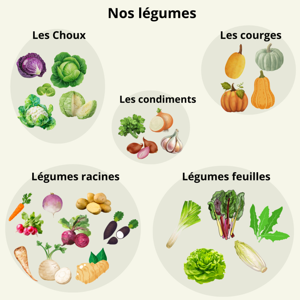 NB : La liste des fruits et légumes mentionnés ci-dessous est sujette aux variations climatiques. Des changements sur nos étales peuvent survenir à tout instant.