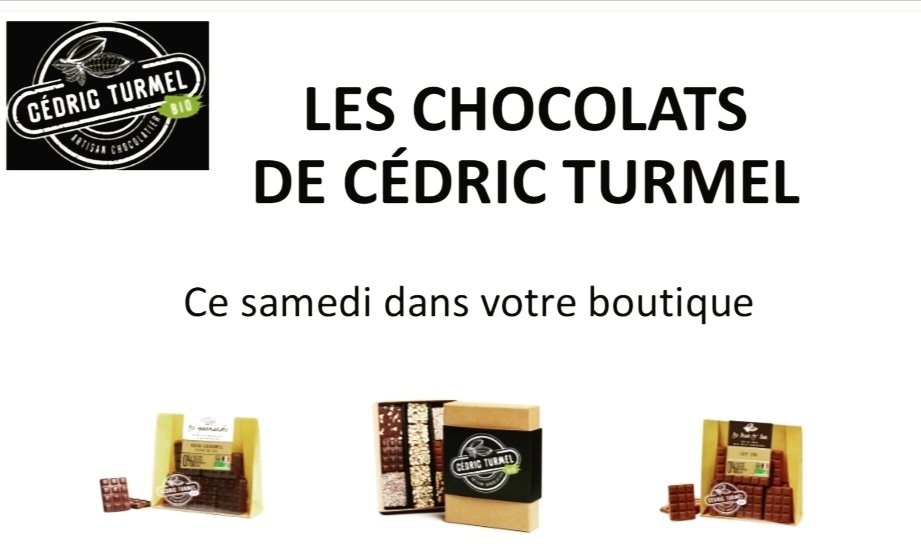Dès samedi, à la boutique, vous aurez le plaisir de trouver les chocolats bio de Éric Turmel.