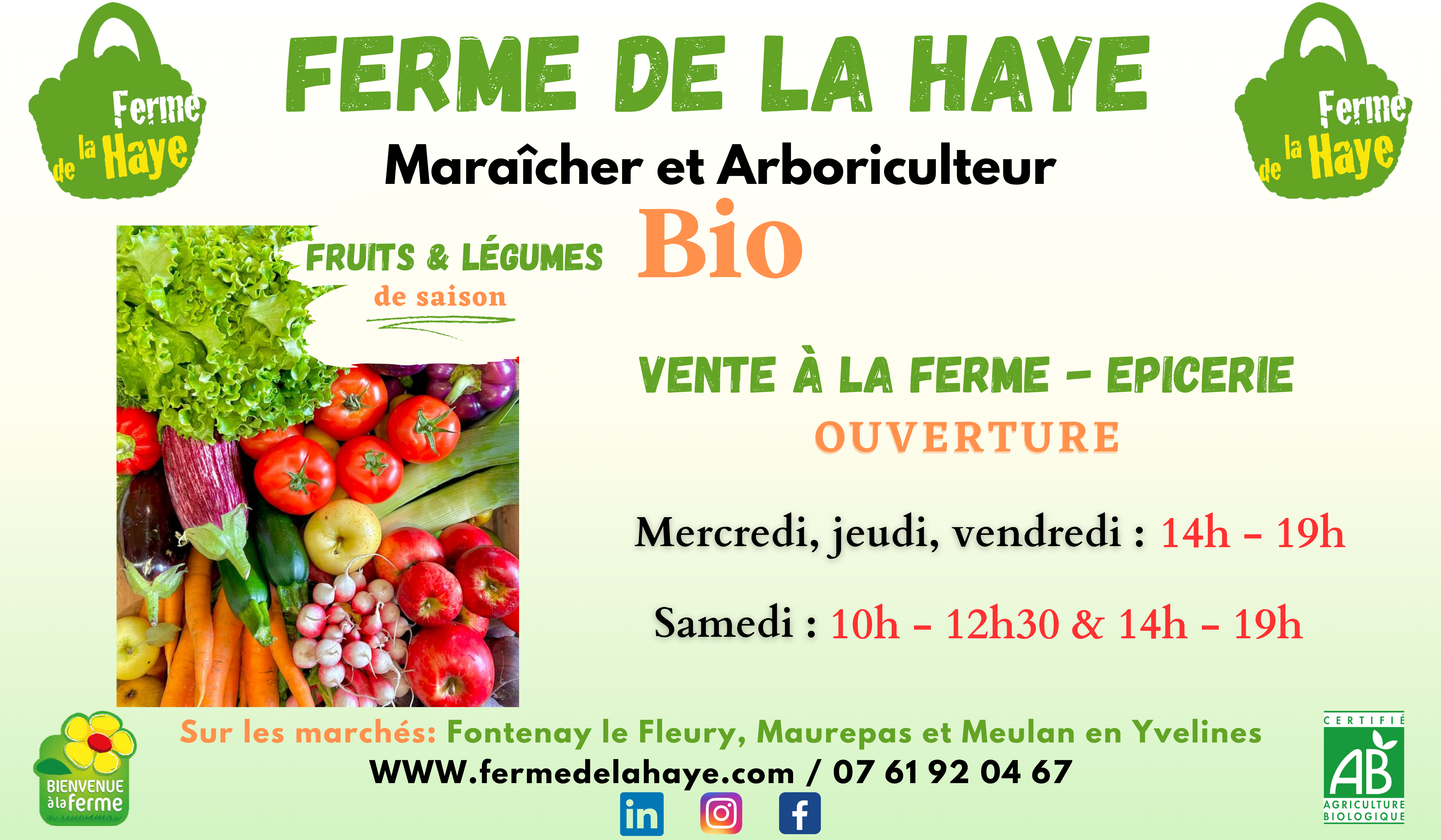Le vendredi et samedi, vous pourrez également vous régaler du pain Bio du Fournil de la Bergerie ainsi que du poulet Bio de la Ferme du Loup Blanc.